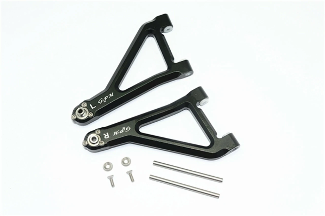 These are the GPM Racing Black Aluminum Front Upper Suspension Arms for Traxxas Unlimited Desert Racer trucks. Made of 6061-T6 aluminum, these arms are incredibly durable and add to the UDR’s ultra-realistic appearance. These come with a pre-installed hollow ball in each arm, as well as new stainless steel hinge pins.