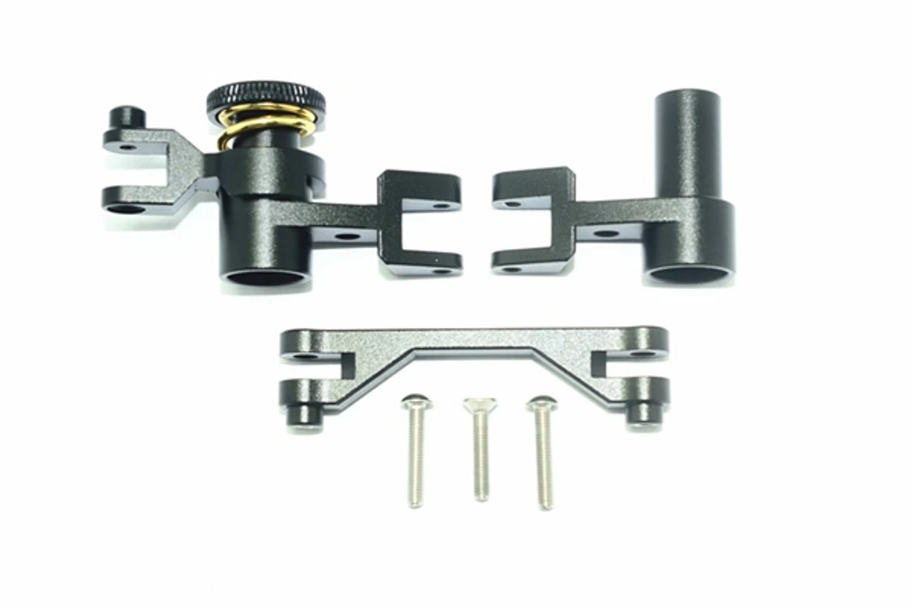 This is the GPM Racing Black Aluminum Steering Bellcrank and Servo Saver Set for Traxxas Unlimited Desert Racer trucks. Made of 6061-T6 aluminum, this assembly is durable and rock solid. The anodized finish makes the part look awesome installed on the UDR as well.