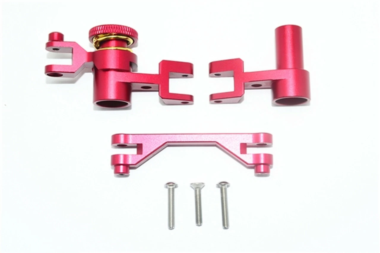 This is the GPM Racing Red Aluminum Steering Bellcrank and Servo Saver Set for Traxxas Unlimited Desert Racer trucks. Made of 6061-T6 aluminum, this assembly is durable and rock solid. The anodized finish makes the part look awesome installed on the UDR as well.