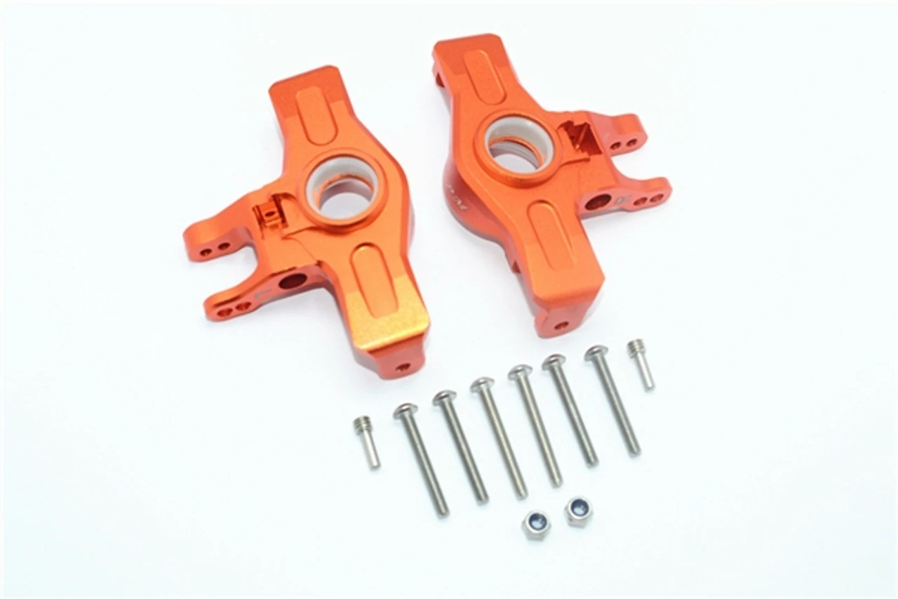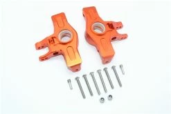 This is a pair of GPM Racing Orange Aluminum Front Axle Carriers for the Traxxas Unlimted Desert Racer trucks. Made of 6061-T6 aluminum and with an anodized finish, these look fantastic and beef up the front end of the truck. Mounting hardware is included.