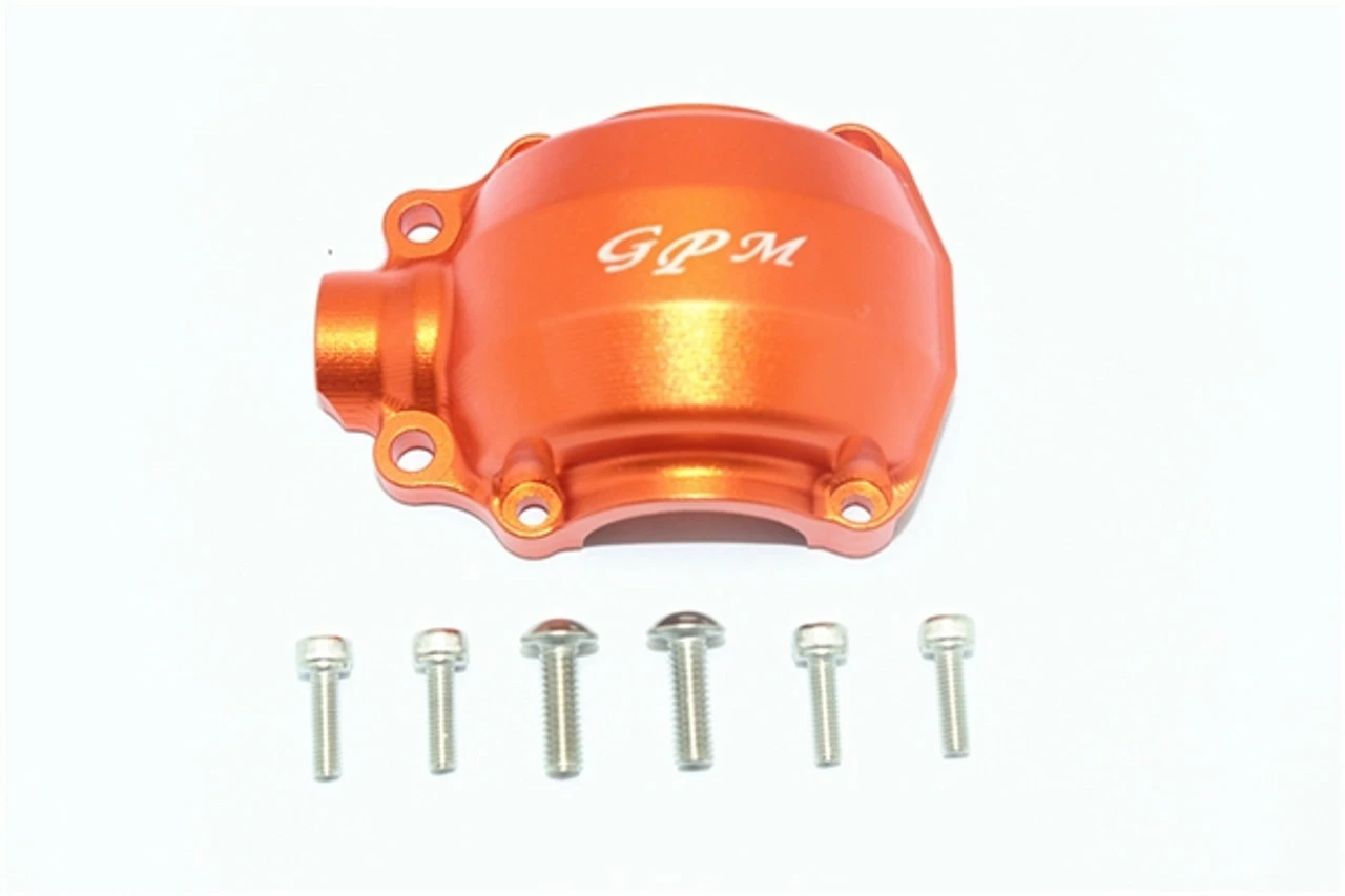 This is the GPM Racing Orange Aluminum Front Differential Housing for Traxxas Unlimited Desert Racer trucks. Made of 6061-T6 aluminum and anodized in color, these look great and help reduce flex in the differential, preventing damage to the gears.