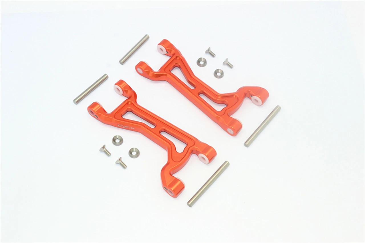 These are the GPM Racing Orange Aluminum Upper Suspension Arms for the front or rear of the Traxxas 1/10 Maxx 4S trucks. Made of 6061 T6 aluminum with an anodized finish, these are a great way to dress up your truck and improve durability. Stainless steel hinge pins are included.