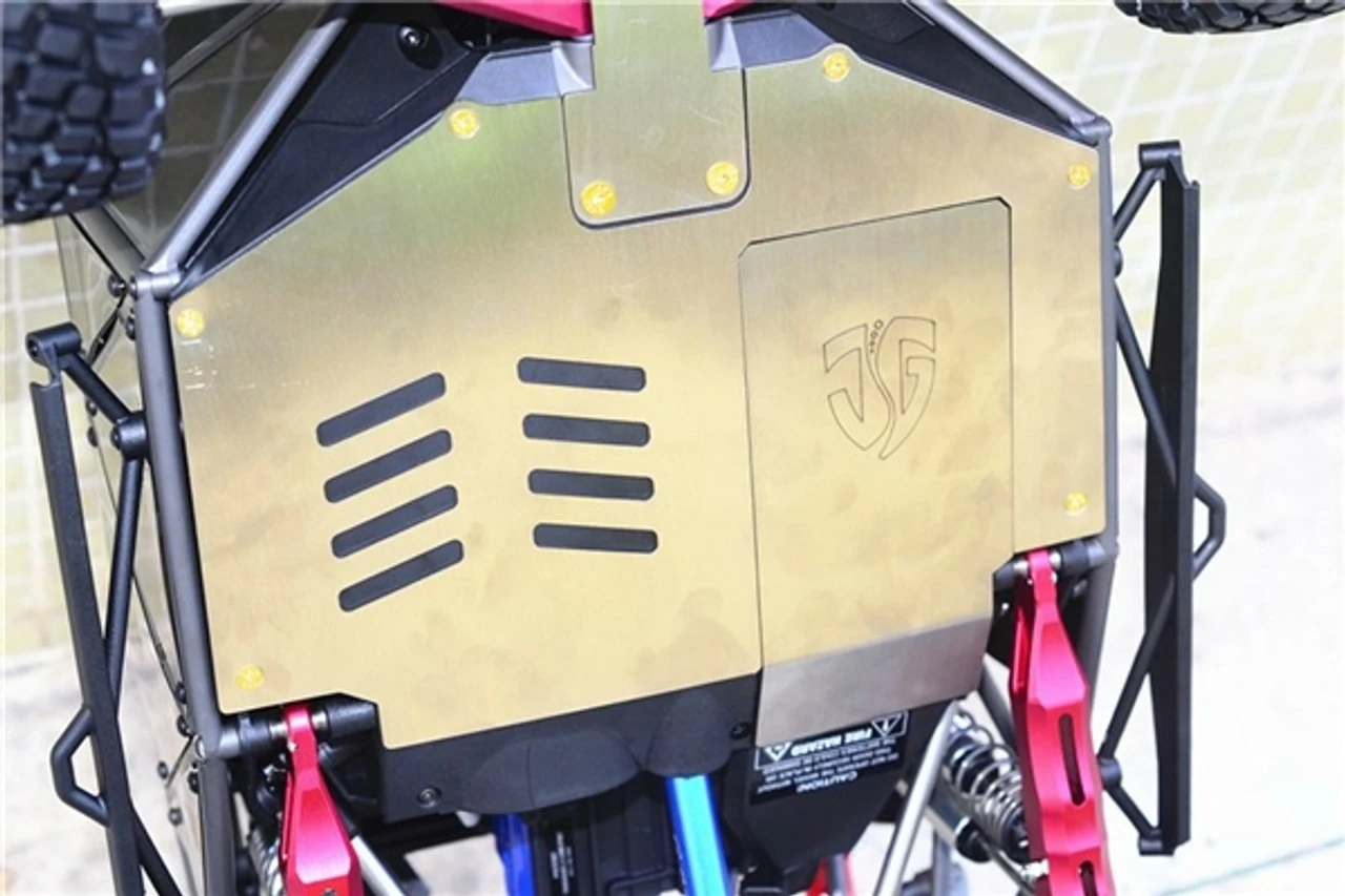 This is the GPM Racing Stainless Steel Center Chassis Skid Plate Set for Traxxas Unlimited Desert Racer trucks. Made of 304 stainless steel, this is a durable skid plate that looks great as well. Whether you’re building a show truck or bashing it daily, this skid plate is perfect for both!
