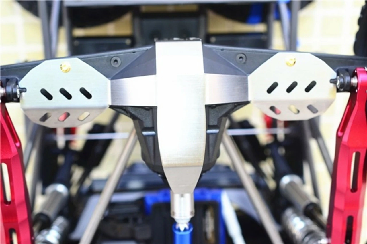 This is the GPM Racing Stainless Steel Rear Axle Housing Skid Plate for Traxxas Unlimited Desert Racer trucks. Made of 304 stainless steel, this skid plate offers excellent protection for the rear axle housing, and looks great doing it. Whether you’re building a show truck or bashing it daily, this skid plate is perfect for both!