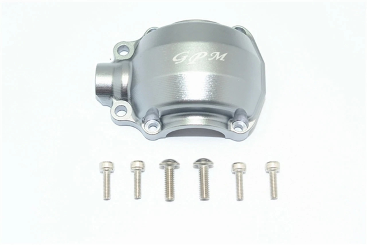 This is the GPM Racing Gunmetal Aluminum Front Differential Housing for Traxxas Unlimited Desert Racer trucks. Made of 6061-T6 aluminum and anodized in color, these look great and help reduce flex in the differential, preventing damage to the gears.