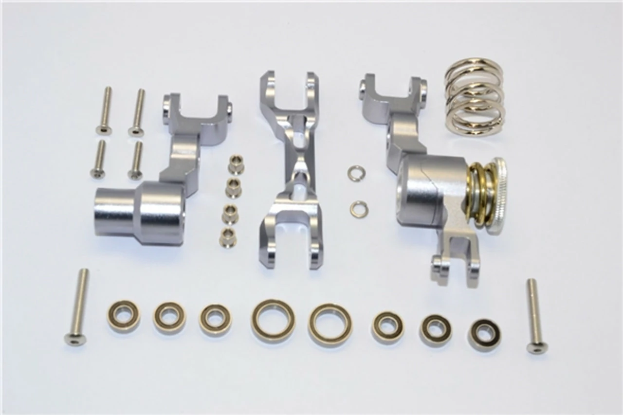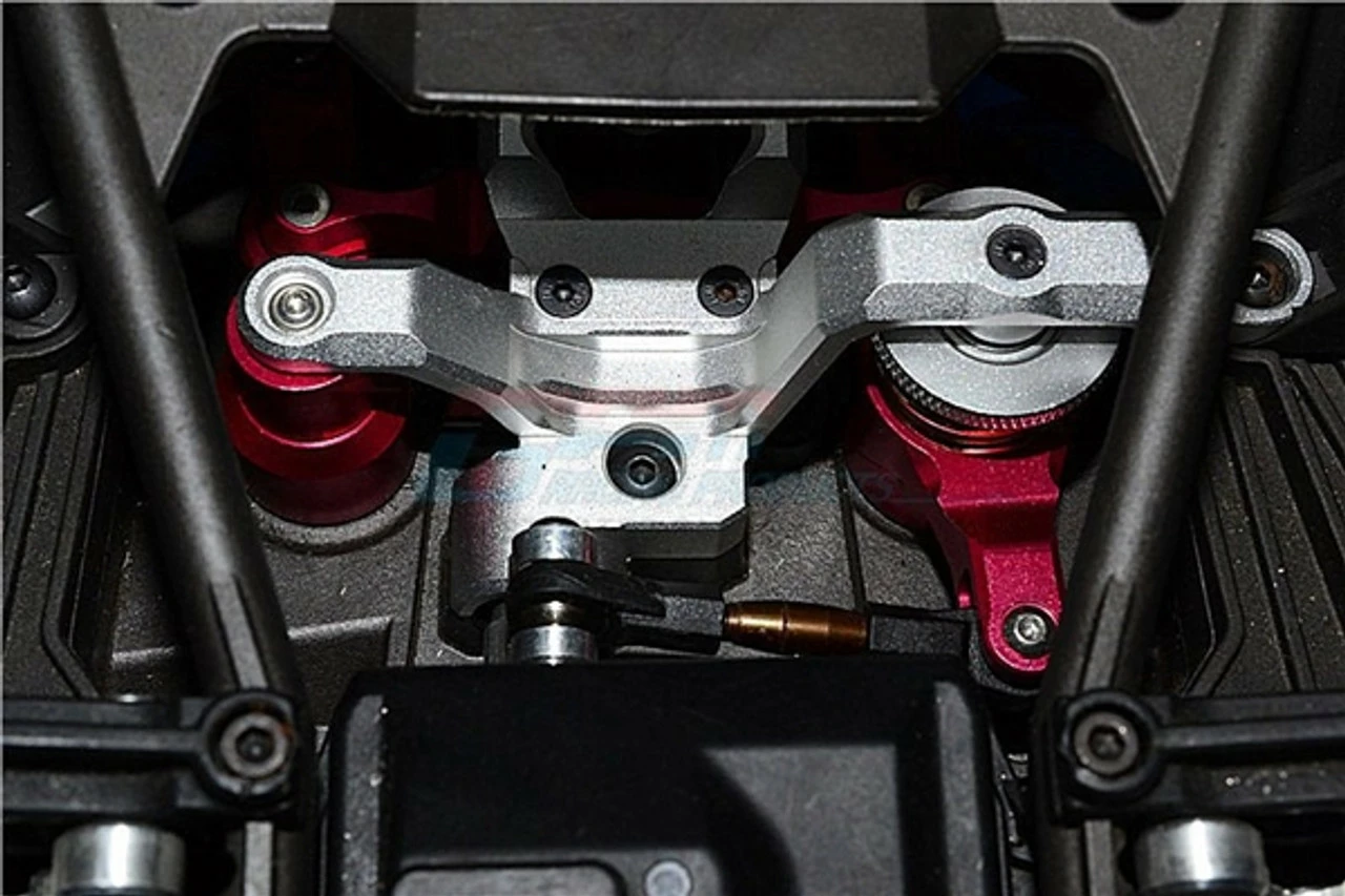 This is the GPM Racing Gunmetal Aluminum Steering Bellcrank Assembly and Servo Saver for Traxxas X-Maxx trucks. Made of 6061-T6 aluminum with an anodized finish, these are rock solid and look fantastic installed. This set is supported by ball bearings for smooth operation.