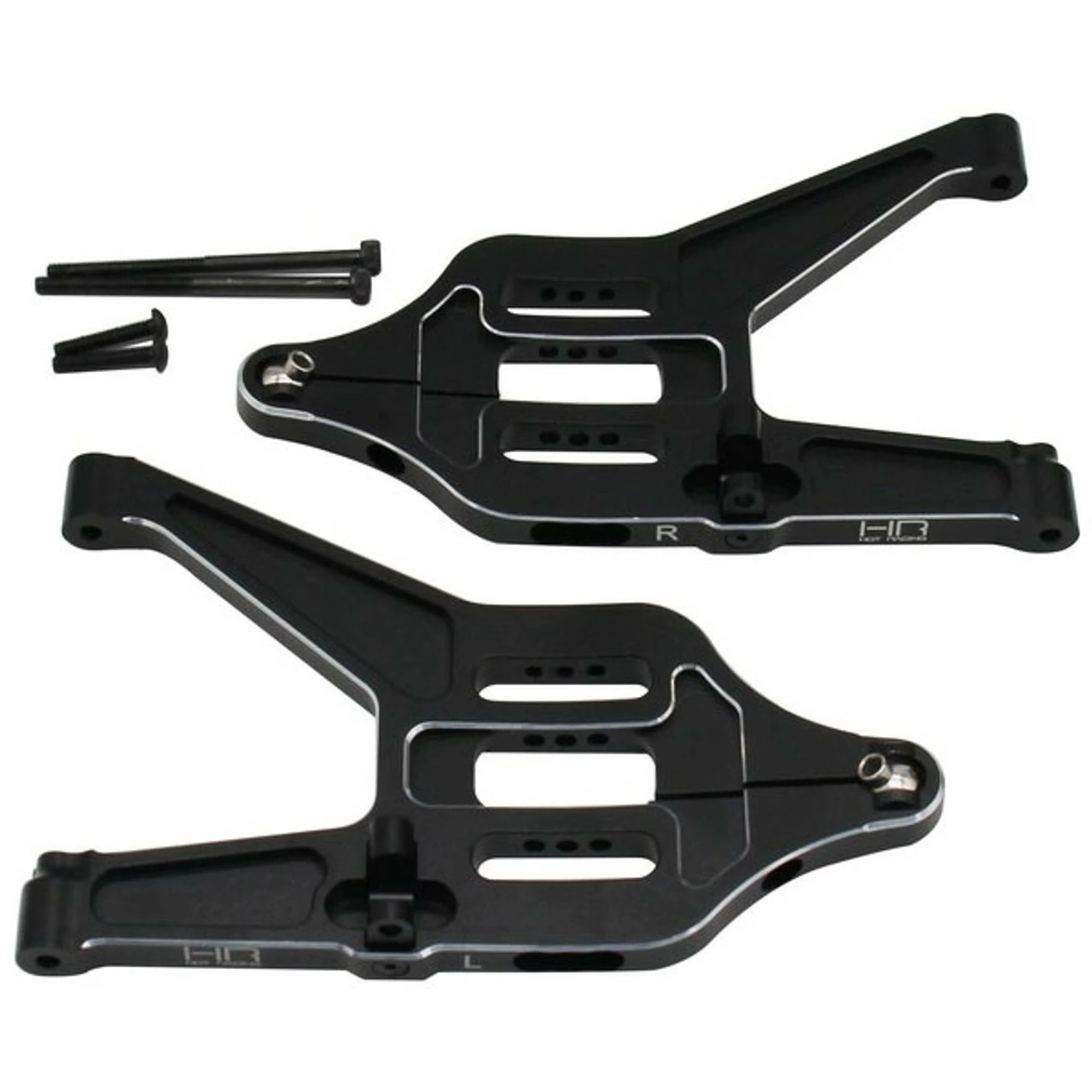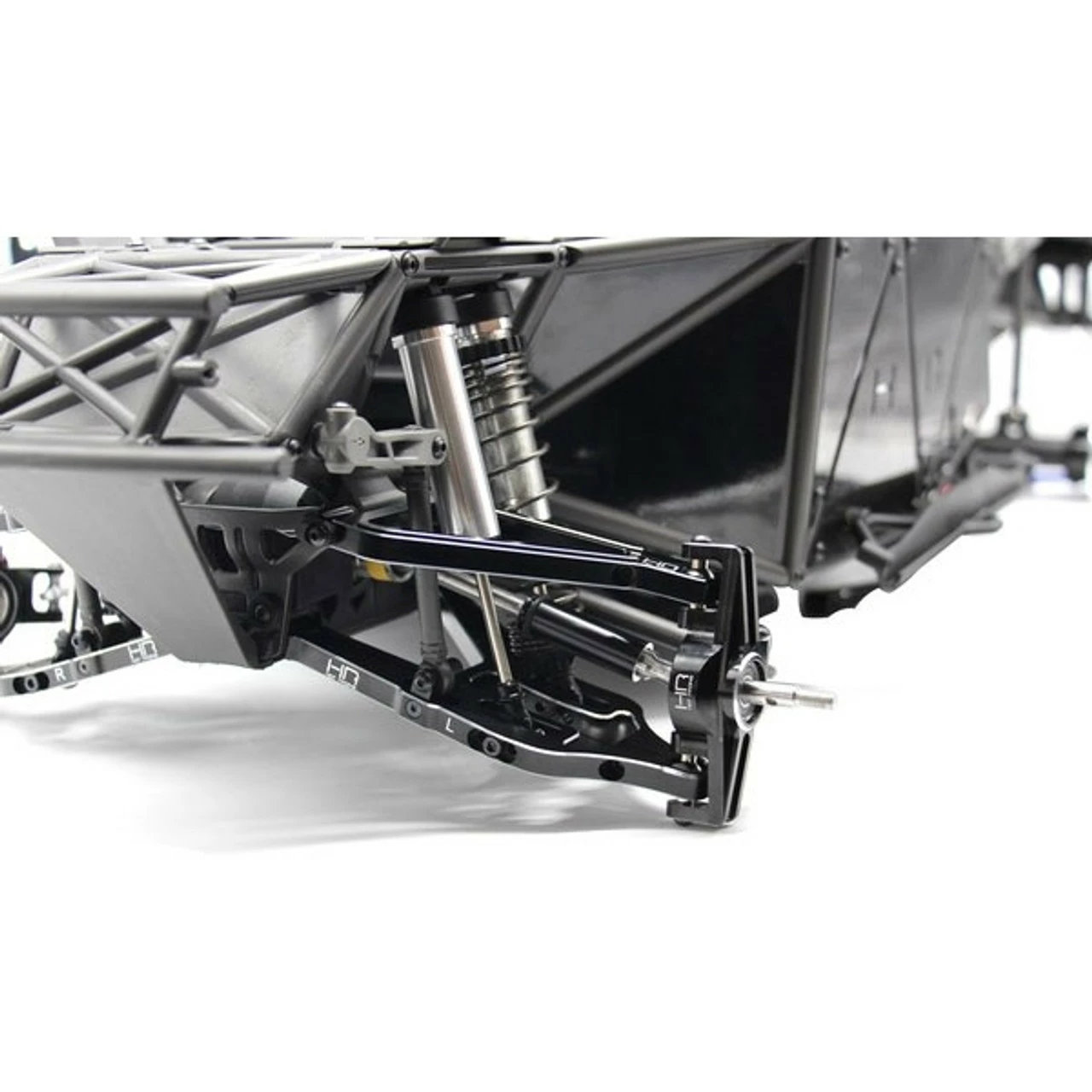 These are the Hot Racing Black Aluminum Front Lower Suspension Arms with Pivot Balls for Traxxas Unlimited Desert Racer trucks. Made of 6061-T6 aluminum, these are incredibly durable, and they certainly boost the realistic appearance of the UDR.