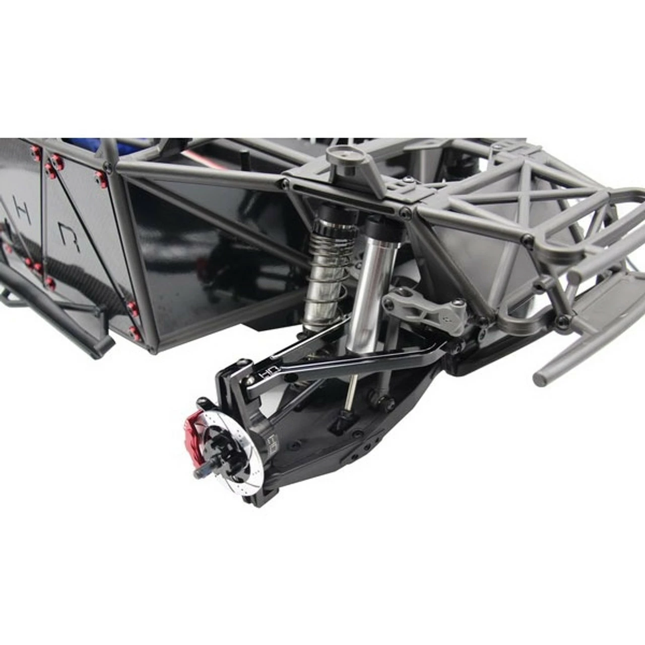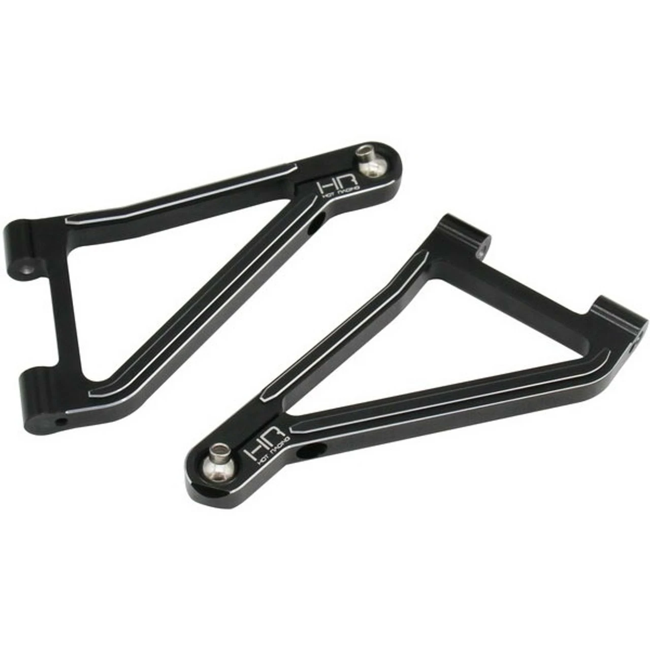 These are the Hot Racing Black Aluminum Front Upper Arms with Pivot Balls for Traxxas Unlimited Desert Racer trucks. Made of 6061-T6 aluminum with a black anodized finish, these are super durable and look amazing.
