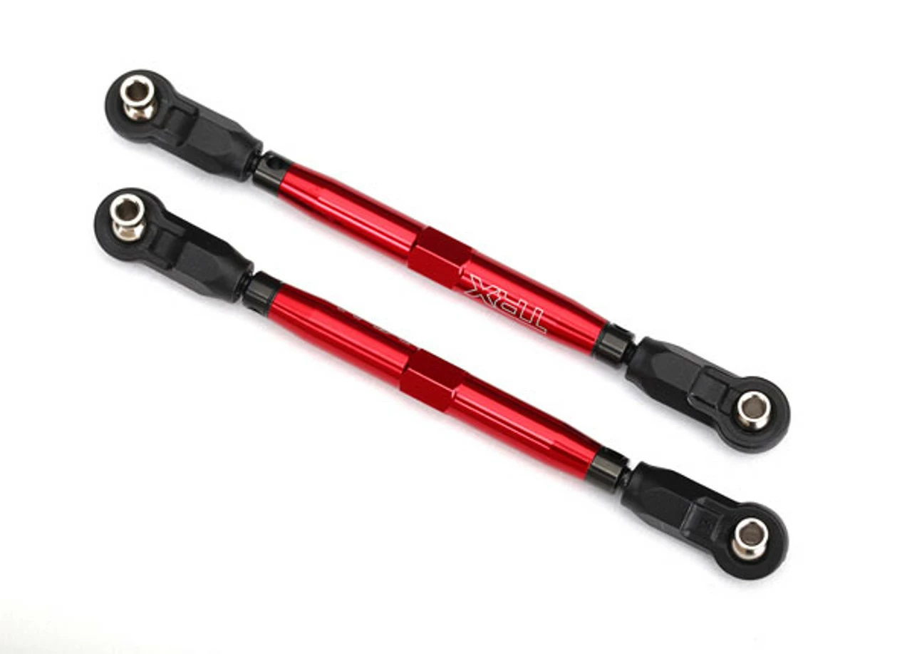 These are the Traxxas Unlimited Desert Racer Front TUBES Red Anodized 7075-T6 Aluminum 102mm Toe Links. The TUBES design is stronger than titanium. These come assembled with rod ends, hollow balls, and a 7mm adjustment wrench. These links make a great addtion to the UDR, improving adjustability, strength, and looking fantastic in the process!